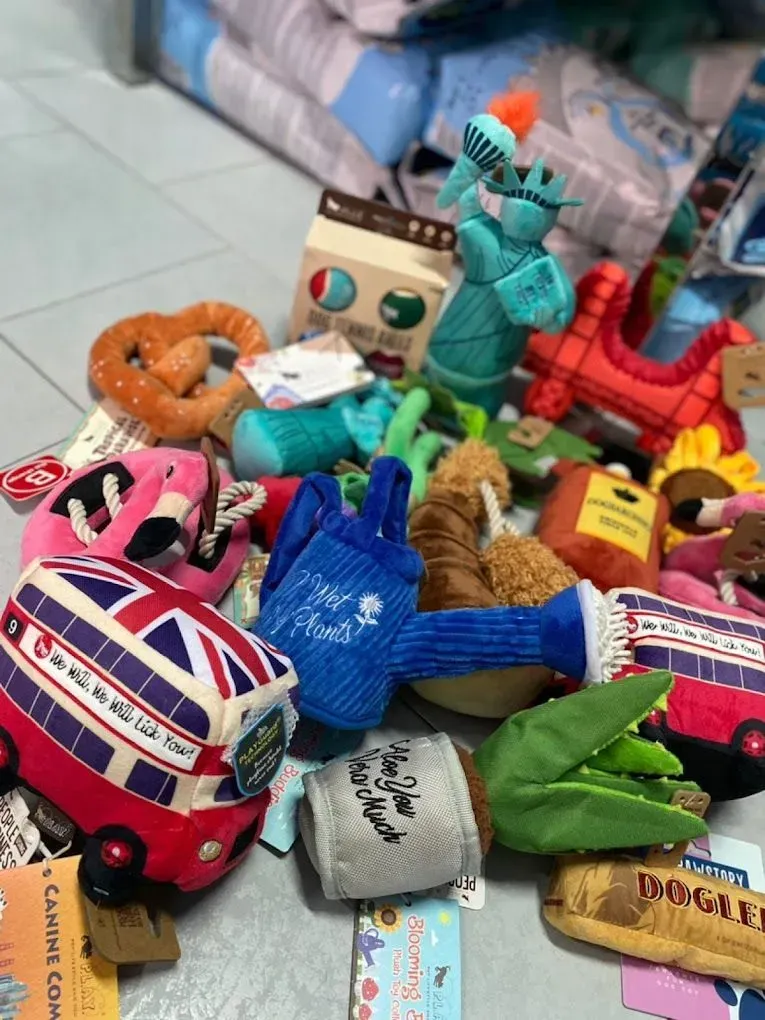 siamo forniti di un vasto assortimento di ciotole, cucce, cuscini, trasportini, impermeabili, guinzagli e collari, giochi di: